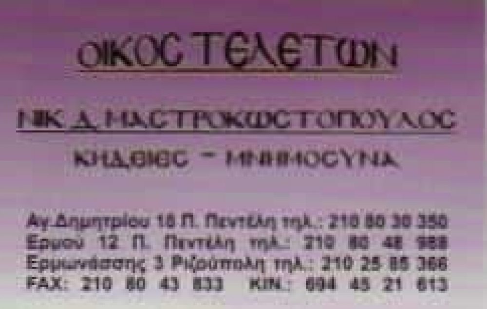 ΓΡΑΦΕΙΟ ΤΕΛΕΤΩΝ ΠΑΛΑΙΑ ΠΕΝΤΕΛΗ,ΓΡΑΦΕΙΟ ΜΝΗΜΟΣΥΝΩΝ ΠΑΛΑΙΑ ΠΕΝΤΕΛΗ, ΠΕΝΤΕΛΗ, ΡΙΖΟΥΠΟΛΗ, ΜΑΣΤΡΟΚΩΣΤΟΠΟΥΛΟΣ ΝΙΚΟΛΑΟΣ, ΓΡΑΦΕΙΑ ΤΕΛΕΤΩΝ ΑΤΤΙΚΗ, ΚΗΔΕΙΑ ΠΑΛΑΙΑ ΠΕΝΤΕΛΗ, ΚΗΔΕΙΕΣ ΠΑΛΑΙΑ ΠΕΝΤΕΛΗ, ΜΝΗΜΟΣΥΝΑ ΠΑΛΑΙΑ ΠΕΝΤΕΛΗ, ΜΝΗΜΟΣΥΝΟ ΠΑΛΑΙΑ ΠΕΝΤΕΛΗ ΑΤΤΙΚΗ