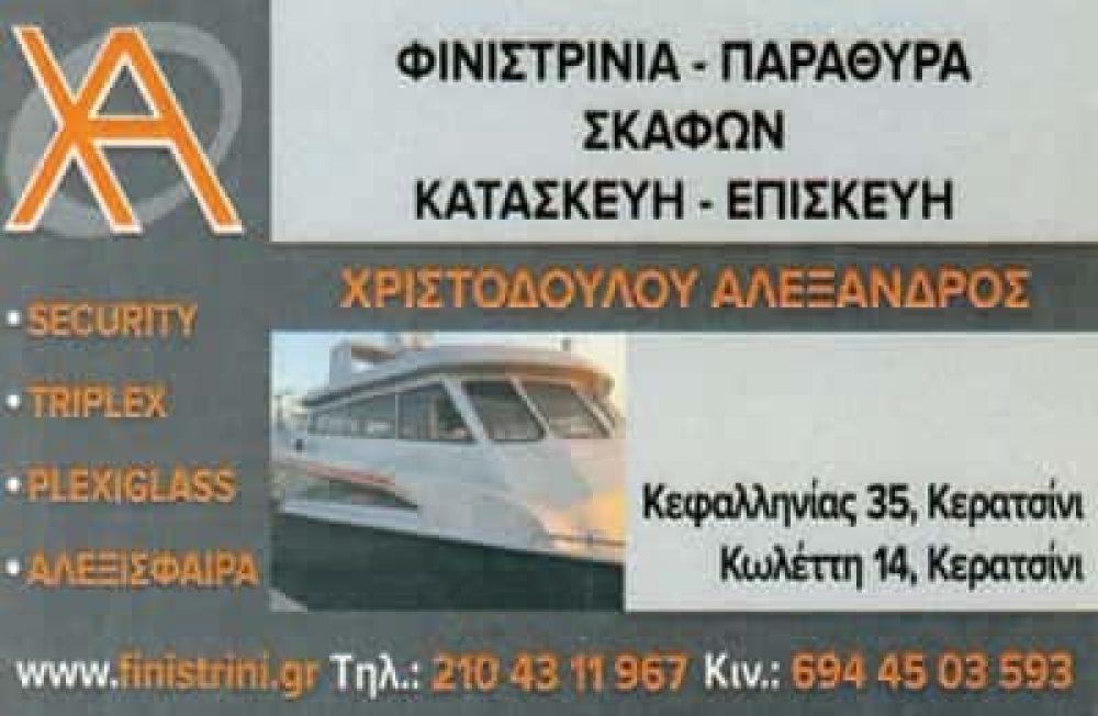ΦΙΝΙΣΤΡΙΝΙΑ ΣΚΑΦΩΝ ΚΕΡΑΤΣΙΝΙ, ΠΑΡΑΘΥΡΑ ΣΚΑΦΩΝ ΚΕΡΑΤΣΙΝΙ, ΤΟ ΦΙΝΙΣΤΡΙΝΙ, ΚΕΡΑΤΣΙΝΙ, ΑΤΤΙΚΗ, ΧΡΙΣΤΟΔΟΥΛΟΥ ΑΛΕΞΑΝΔΡΟΣ,ΤΖΑΜΙΑ ΚΡΥΣΤΑΛΛΑ ΣΚΑΦΩΝ ΚΕΡΑΤΣΙΝΙ,ΣΥΝΕΡΓΕΙΟ ΣΚΑΦΩΝ ΚΕΡΑΤΣΙΝΙ ΑΤΤΙΚΗ